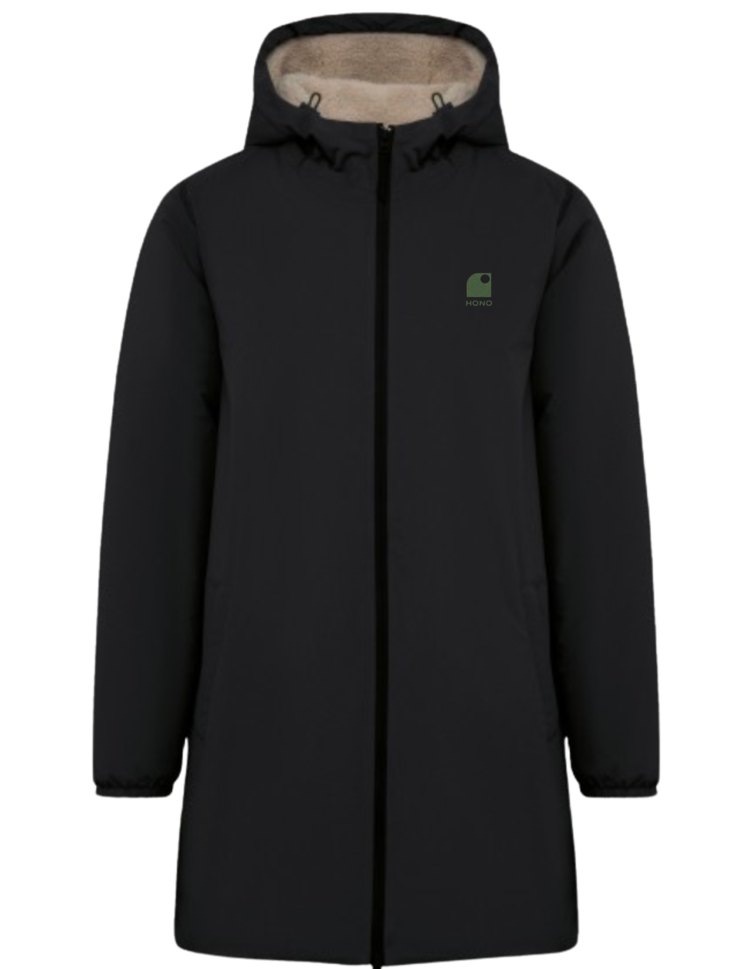 Veste imperméable écoresponsable unisexe HONO, doublée en sherpa recyclé, surfwear durable pour homme et femme.